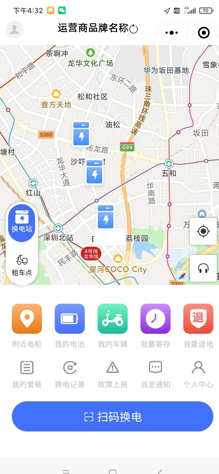 四、點(diǎn)小程序主頁中的掃碼換電,掃柜子上的二維碼