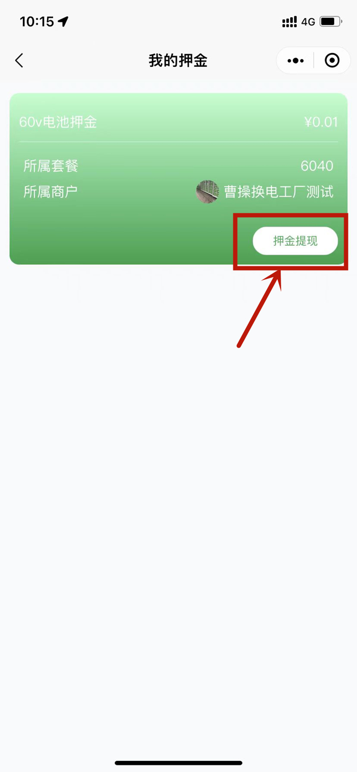 3、點(diǎn)擊【押金提現(xiàn)】。申請押金提現(xiàn)操作完成后,請聯(lián)系柜子運(yùn)營商。需要他們后臺審核同意,押金便會原路返回。